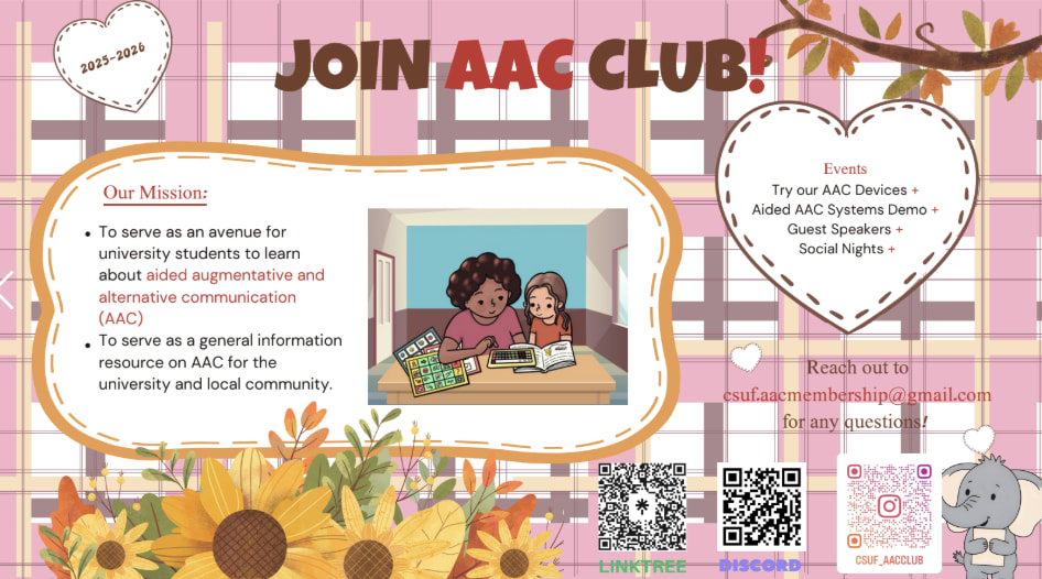 To serve as an avenue for undergraduates to learn about aided Augmentative and Alternative Communication (AAC) and as a general information resource on